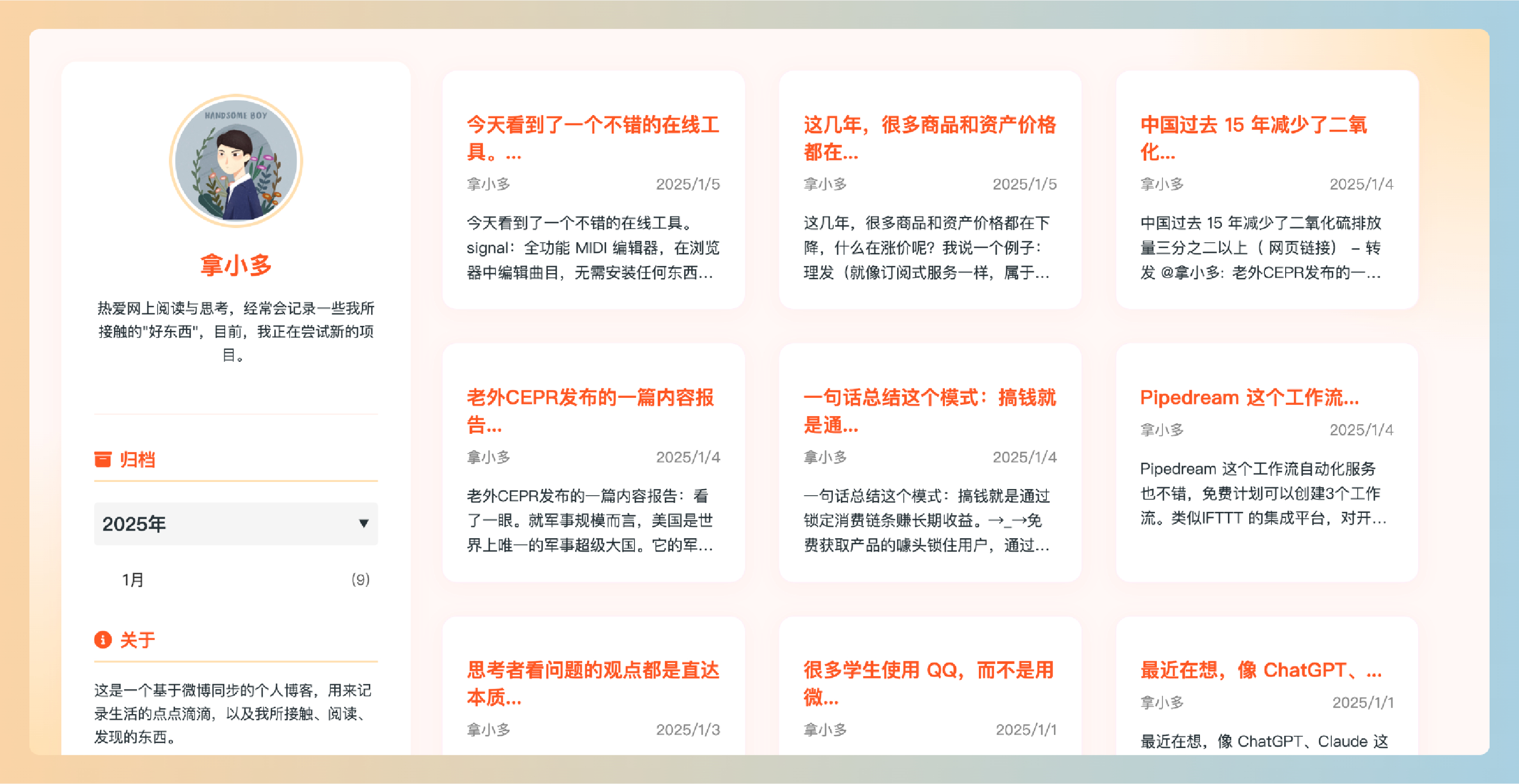 简单说,就是把你的个人微博变成一个漂亮的个人博客网站。