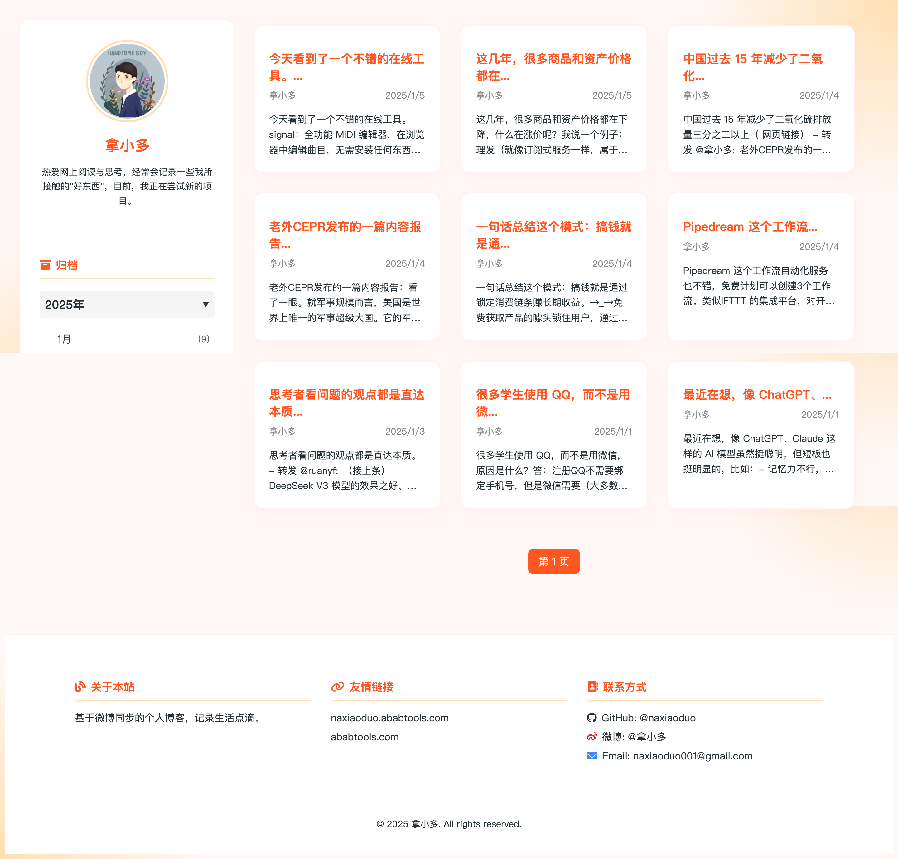 用微博内容和 Next.js 搭建的静态博客,部署在 Cloudflare Pages 上。