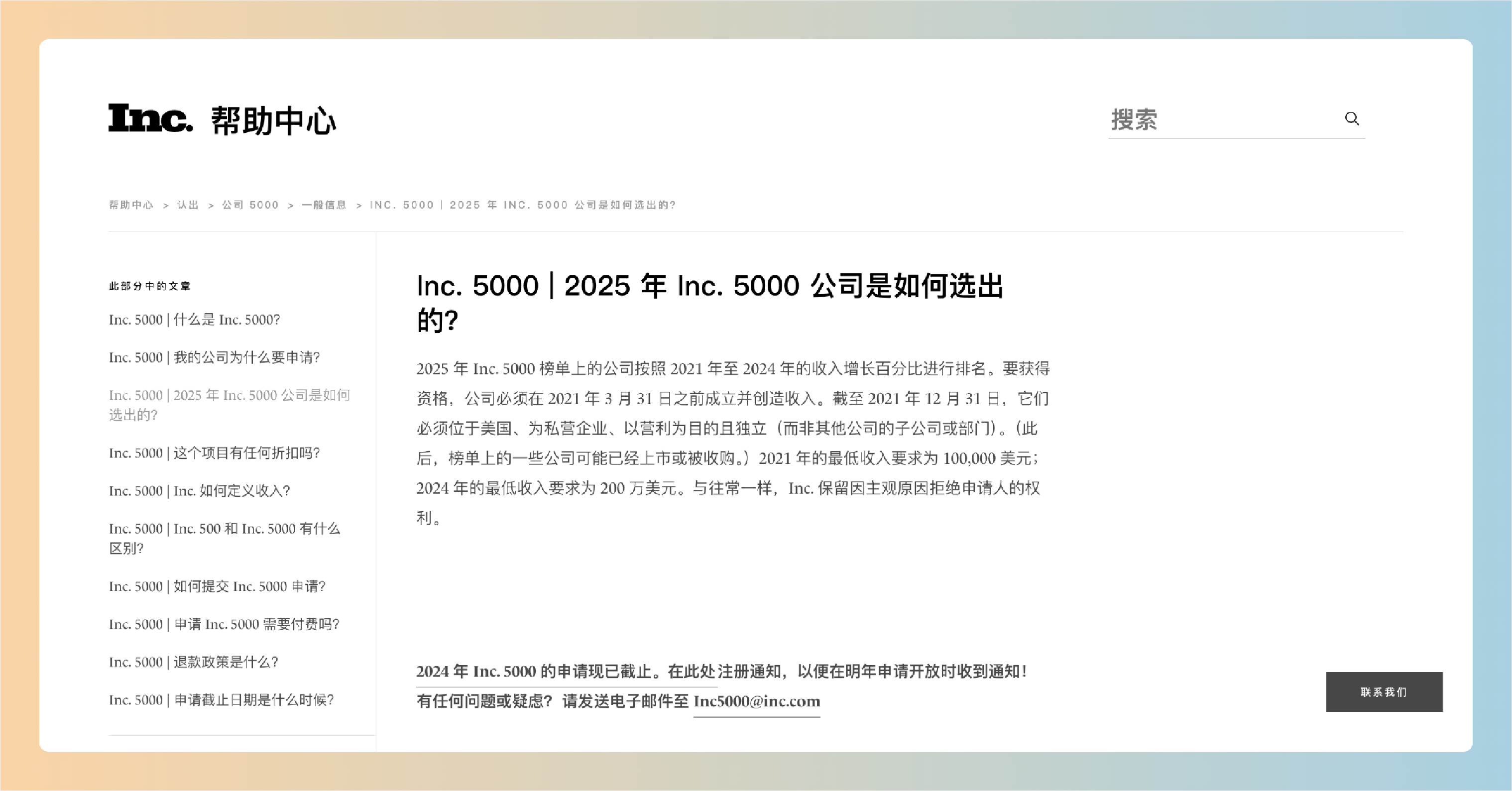 还有FT 1000,列出了欧洲增长最快的1000家公司;Inc. 5000也是必看的——列出了美国最成功的5000家公司,收入增长超快的私营企业。