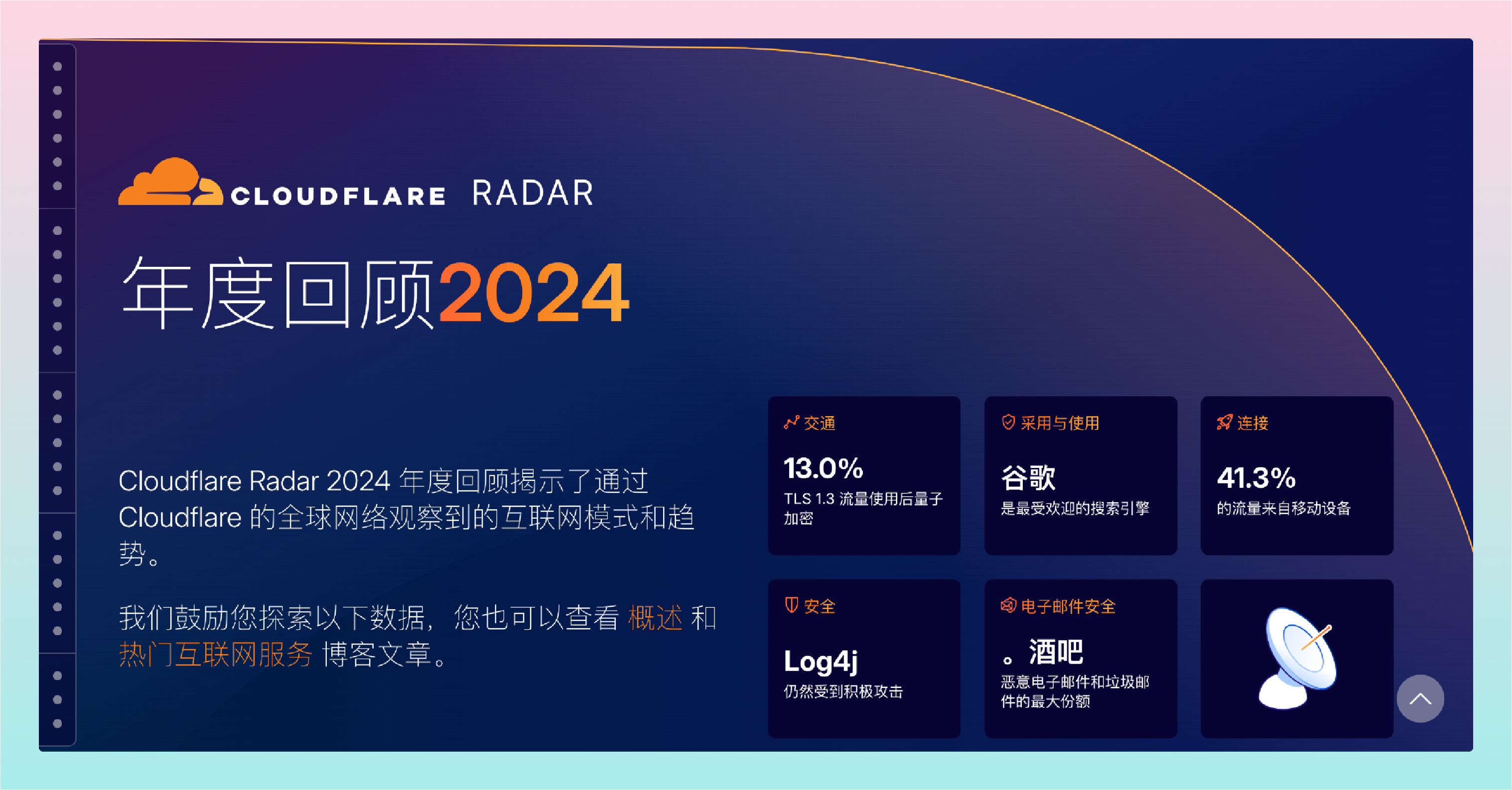 Cloudflare Radar:每年都有年度回顾报告,通过 Cloudflare 的全球网络洞察,来了解互联网的产品与技术趋势。