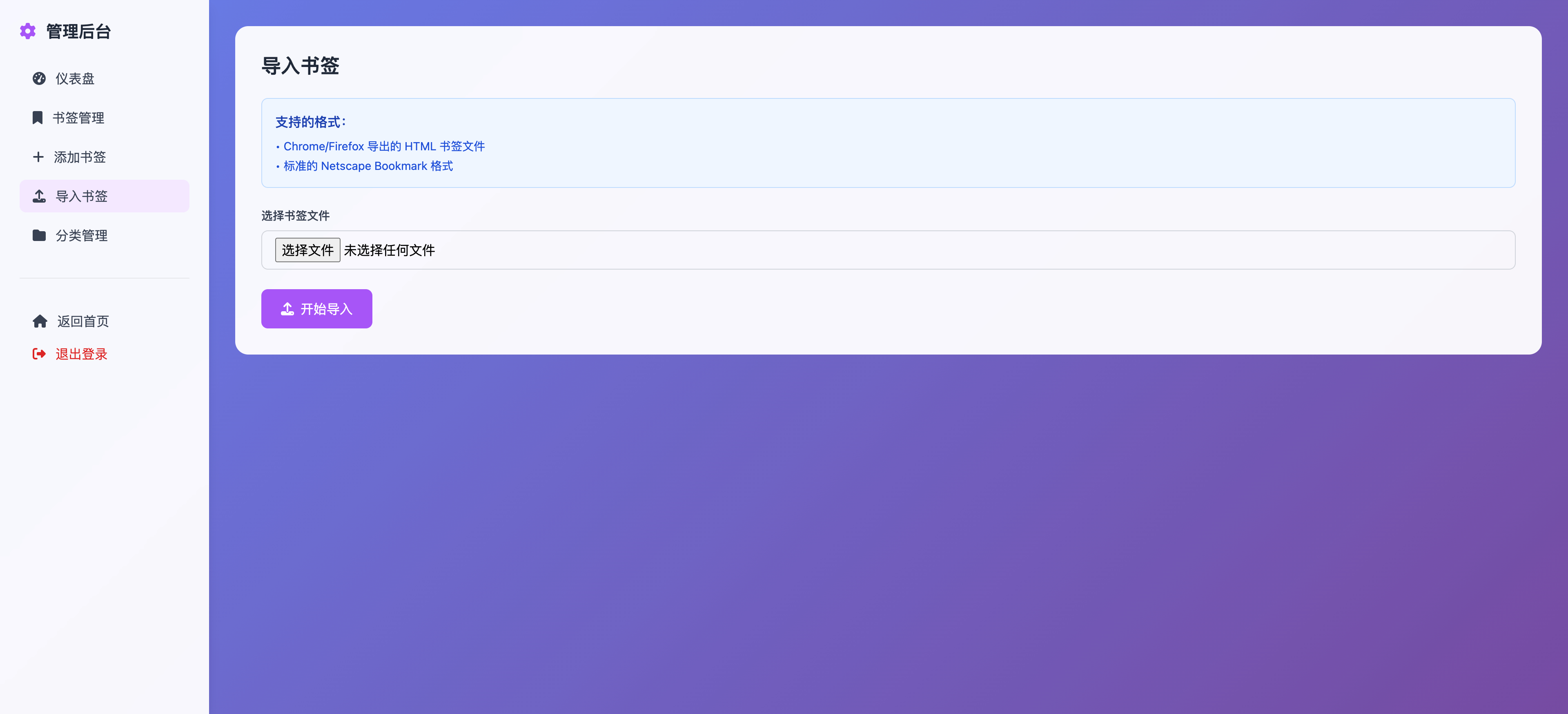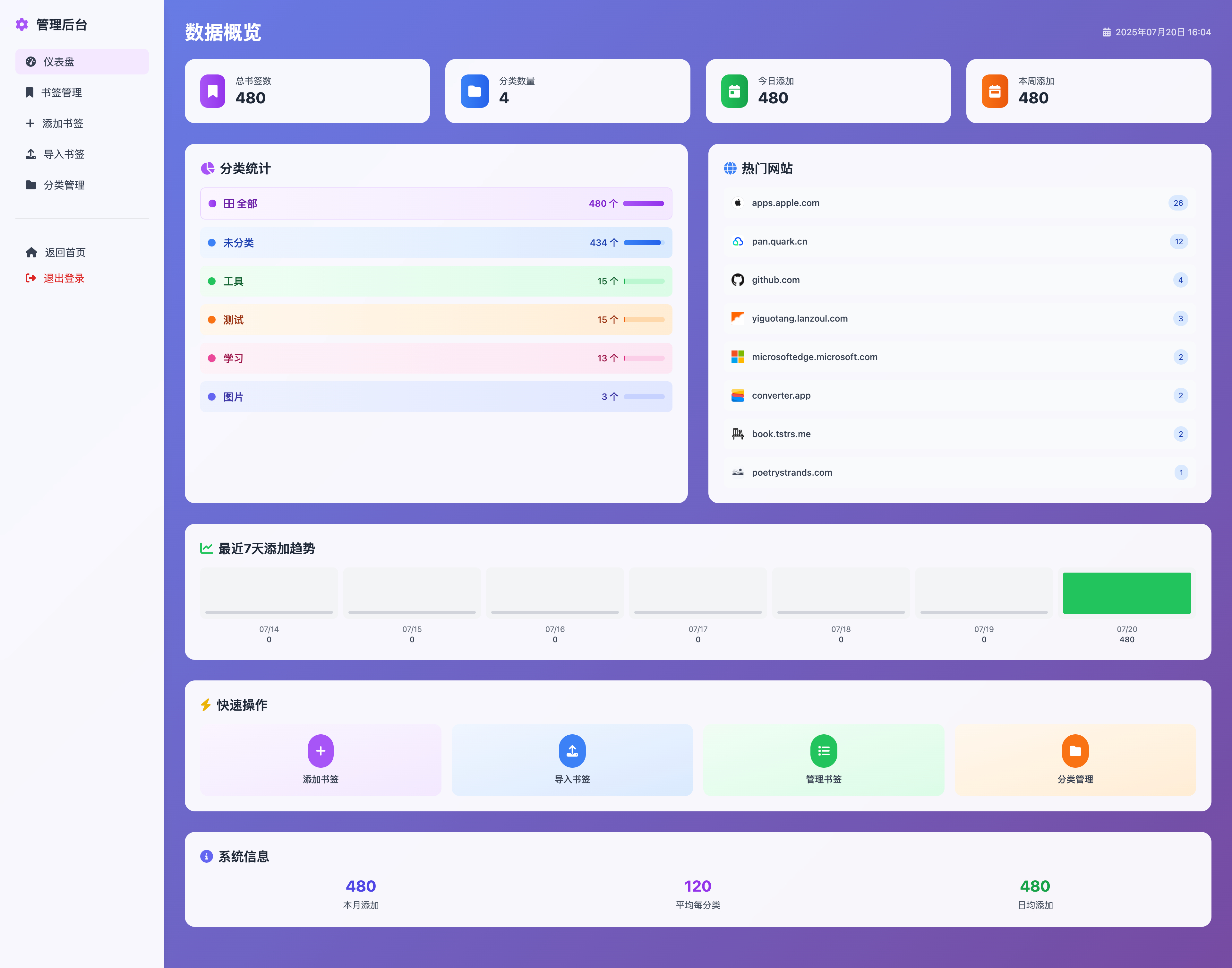 下载书签→导入即可,变成独立的卡片式展示页面,支持后台管理。