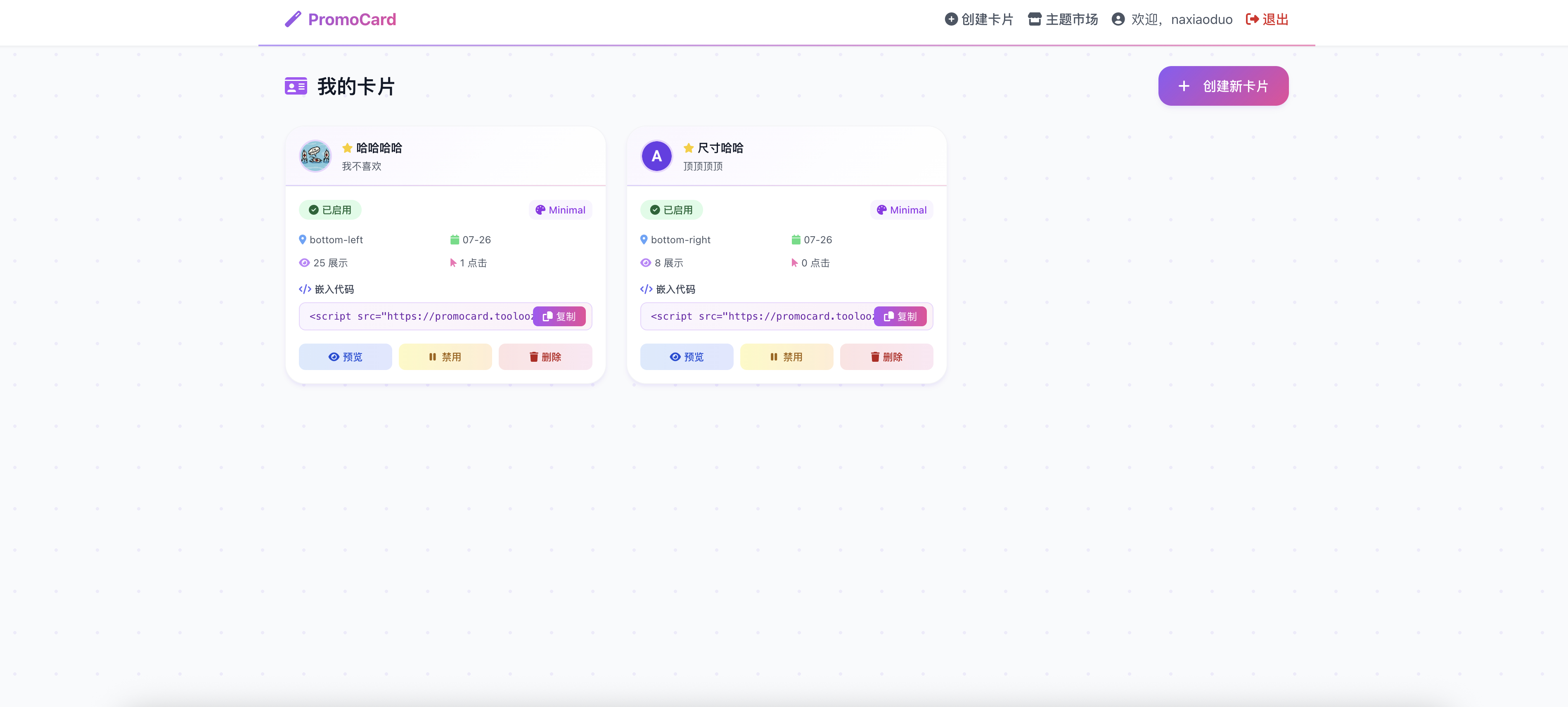 于是,我就设想开发了PromoCard这个产品。只需一行代码嵌入到每个产品中,就可以实现推广效果。