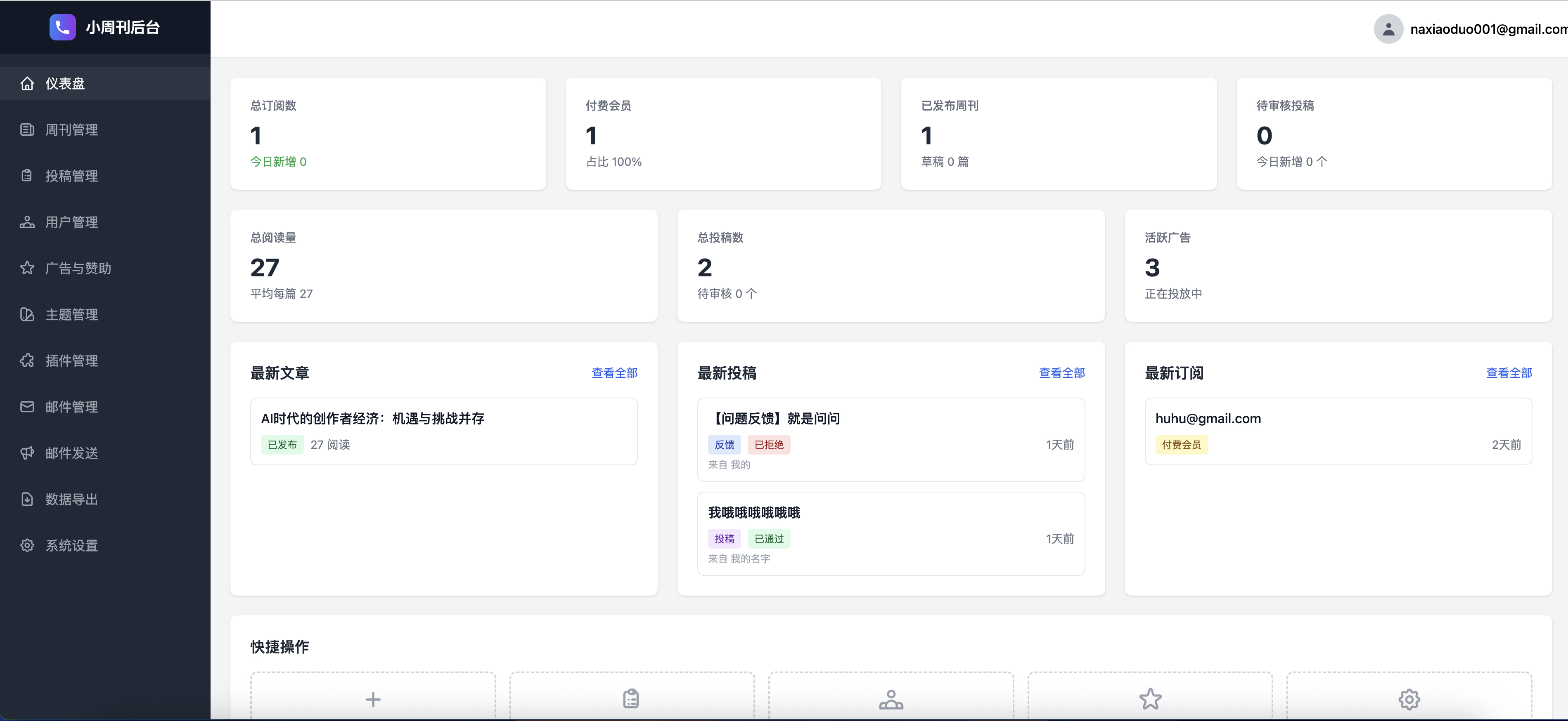 继续优化:1.集成ZeptoMail邮件API,支持邮件发送...拿小多8/8/2025继续优化:1.集成ZeptoMail邮件API,支持邮件发送方式切换。因为发现一些服务器厂商会限制SMTP端口。所以,提供API作为备选方案,API推送更快、成功率更高。2.支持电子邮件模版和自定义模版设置。3.新增ZPAY支付插件(兼容易支付接口),可灵活配置购买支付选项,开启或关闭,可开启淘宝购买激活码或关闭按钮。4. 测试一期,推送周刊的模版,推送到我的邮箱——效果还不错。 查看图片 - 转发 @拿小多: 开发一套小周刊系统,支持SMTP 邮件推送周刊,免费+付费订阅,广告赞助。支持插件扩展和主题模版、API接口,专为周刊而设计的系统。 返回首页查看原文