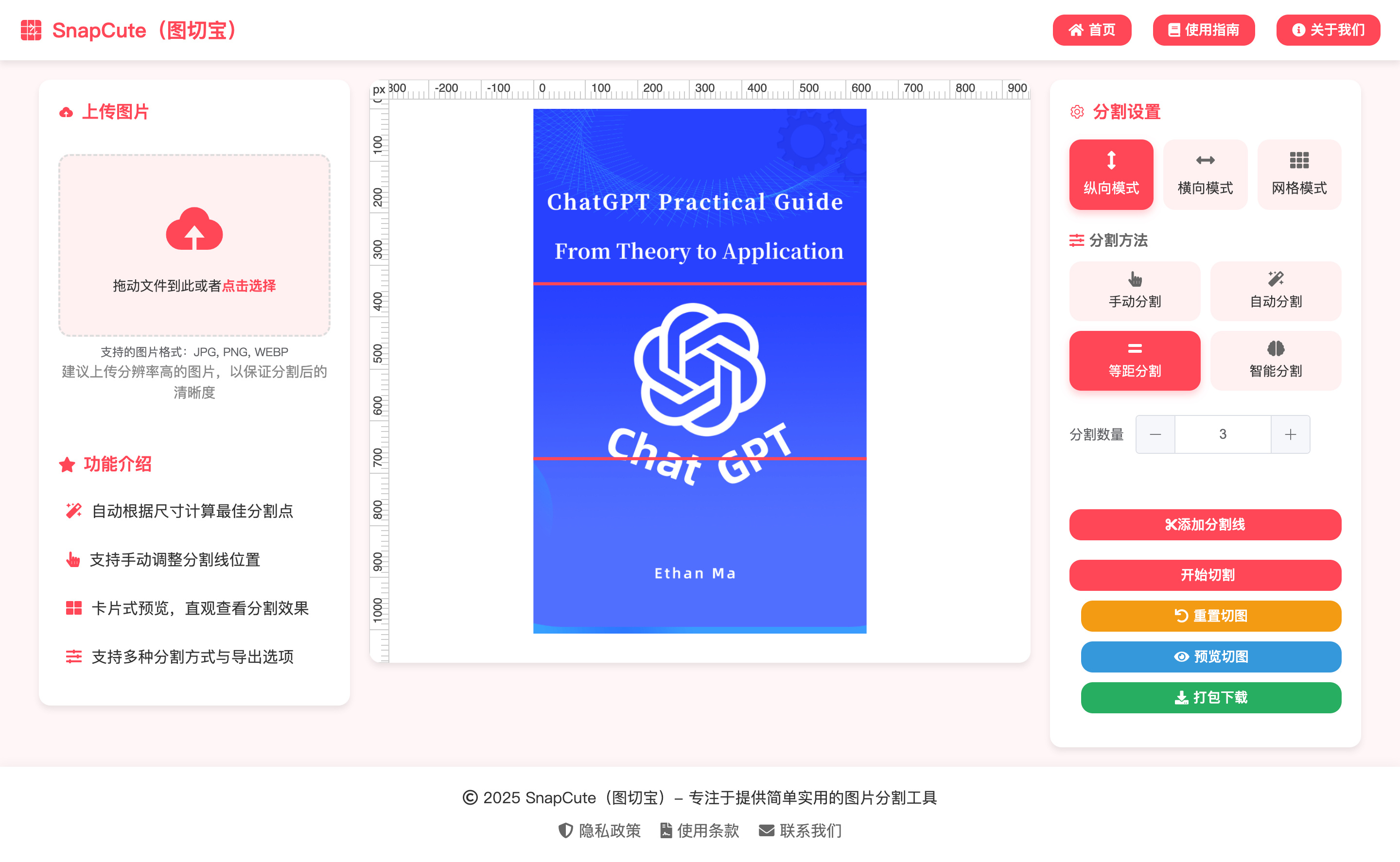 他说他经常在社交媒体(小红书)上发长图,比如那种教程截图啊,但平台会有尺寸相关的要求,手动切图太费劲了,切不好还 ...